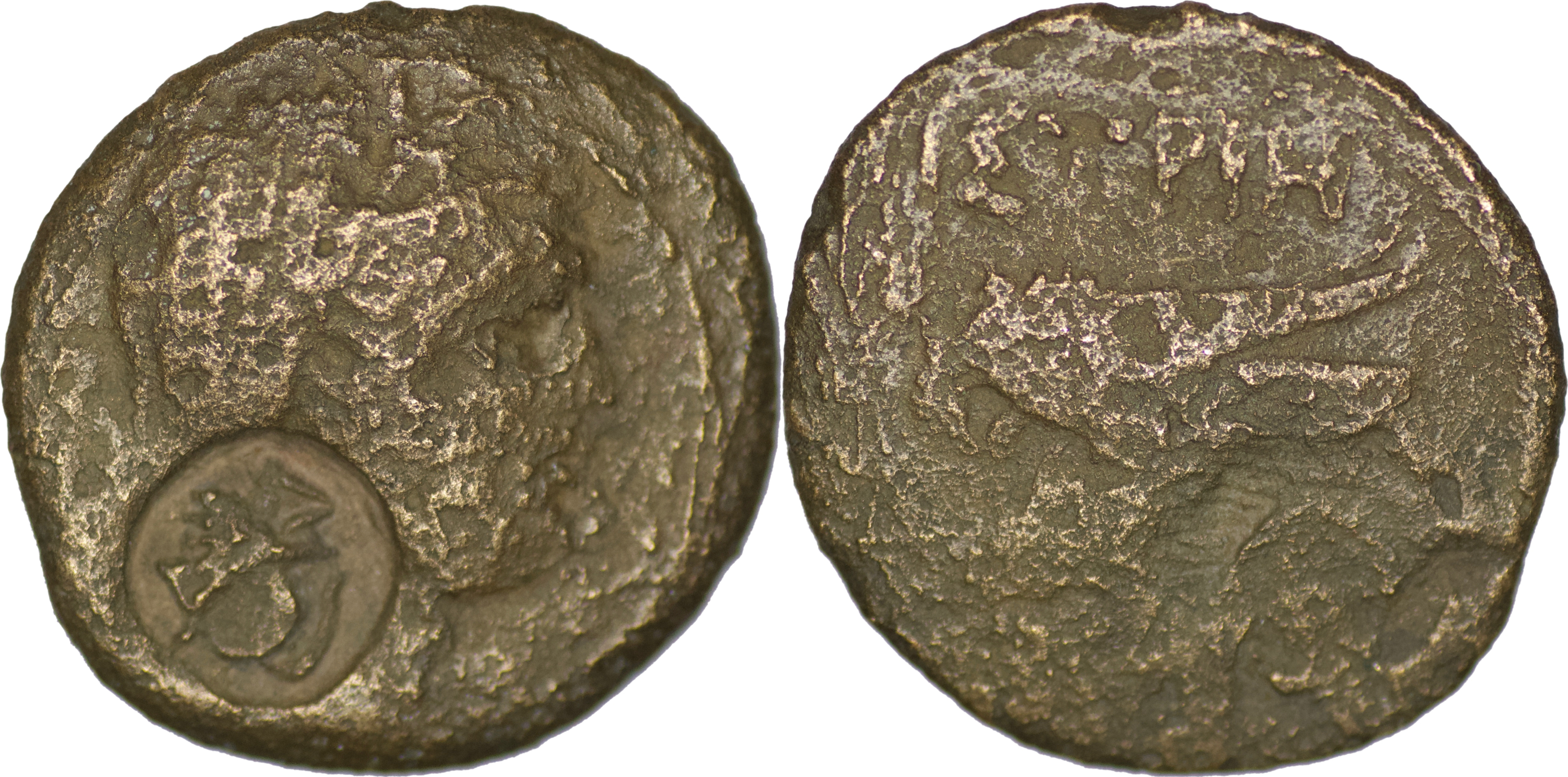 Moesia, Istros. 250-220 BC. AE 23 (5.14g/ 21mm). Veiled head of Demeter right, wearing wreath of corn-ears; c/m: head of Athena right wearing crested helmet / Sea-eagle to left, clutching dolphin in its talons; IΣTPIH above, ear of corn to left. Cf. SNG Stancomb 198-201 and AMNG 1.1, 474-5. From the William Stancomb Collection;