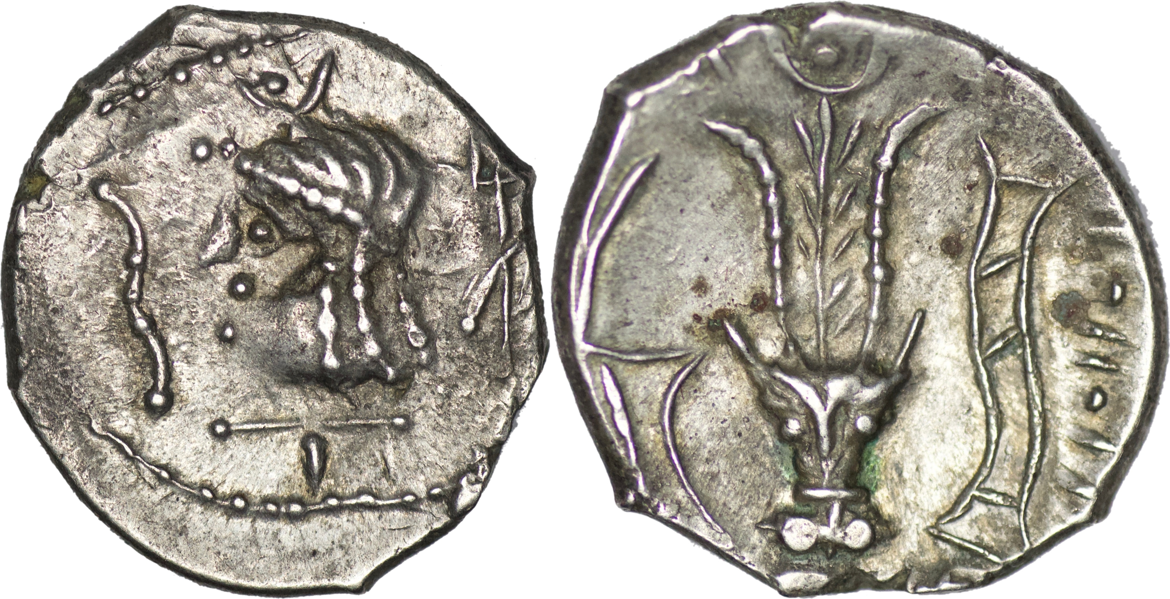 Diademed head l.; at sides, monograms. Rev. Bucranium. SNG ANS 1602. Arabia Felix pl. III, 68-71.