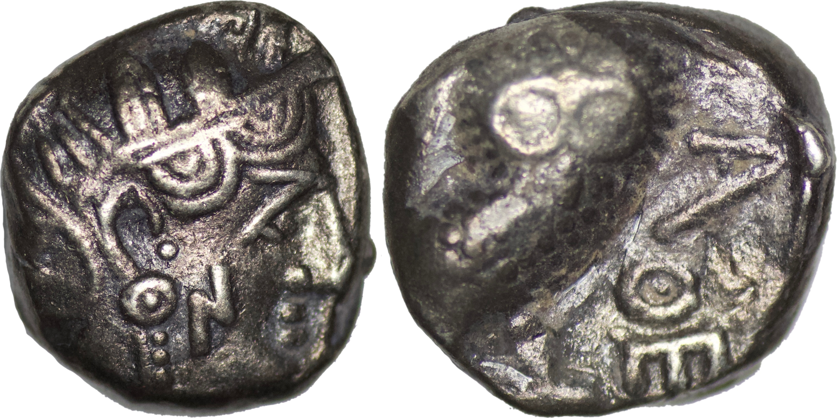 ARABIA: SABAEAN: Anonymous, ca. 3rd-2nd century BC, AR unit (5.07g/ 13mm), Huth-225, CAF-1.4i8, imitating Athenian issue, stylized helmeted head of Athena right, mark of value on cheek // owl standing right with head facing, olive spray and crescent to left, AΘE to right. Very fine, original patina.