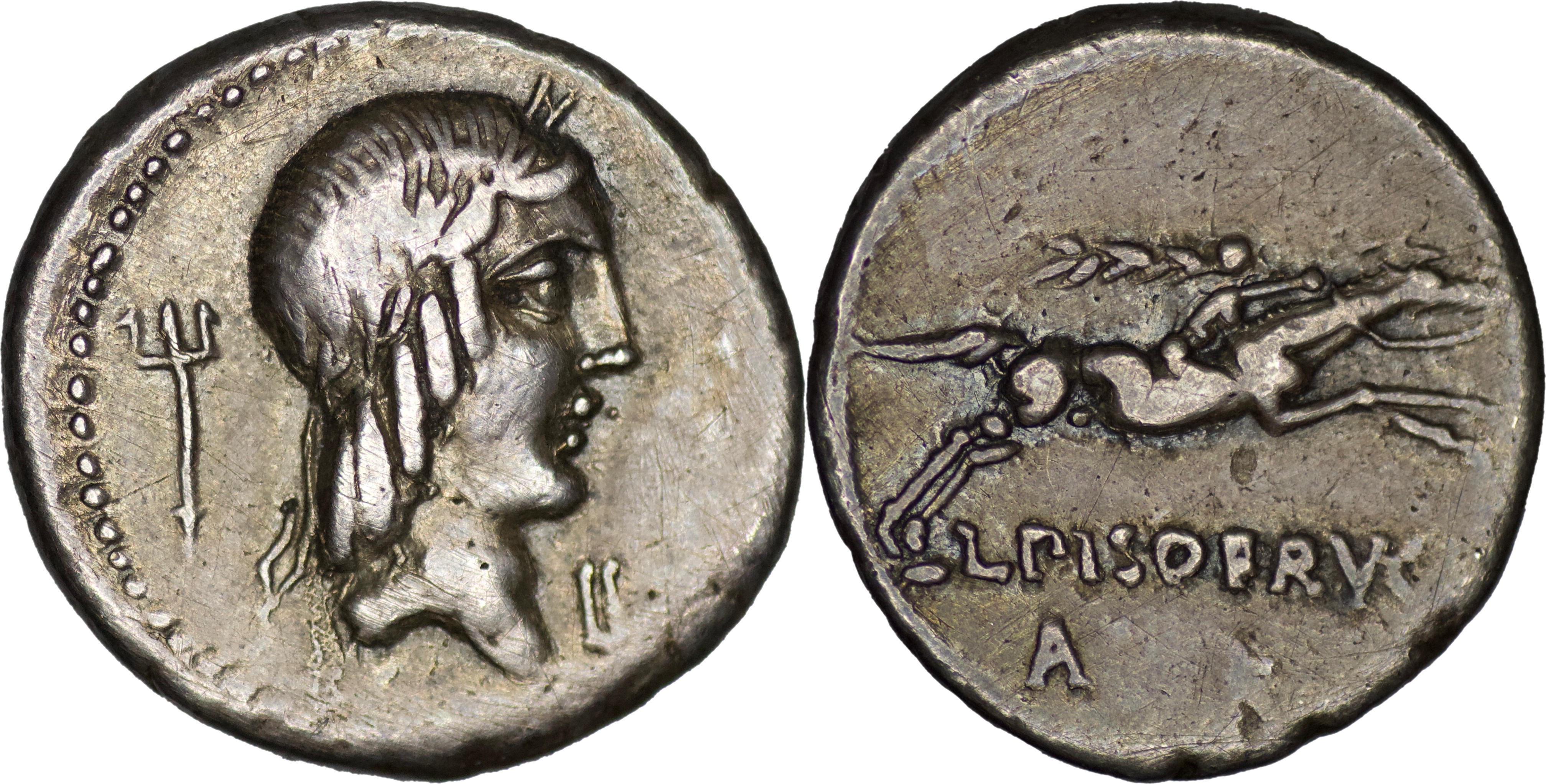 Roman Republic. L. Calpurnius Piso Frugi. 90 BC. AR Denarius. Rome mint.