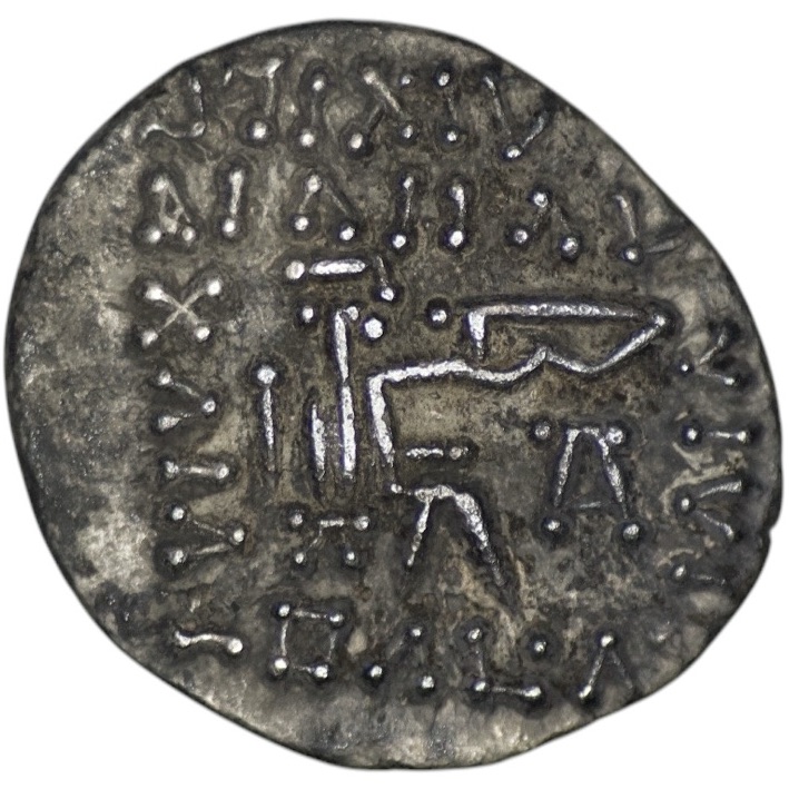 Parthian Empire. Vologases VI. Circa AD 207/8-221/2. AR Drachm (2.86g/ 19mm). Ekbatana mint. Diademed bust left, wearing tiara with earflap; wz in Aramaic to right / Archer (Arsakes I) seated right on throne, holding bow; monogram below bow. Sellwood 88.18; Sunrise –; Shore 456. Very fine, original dark patina.