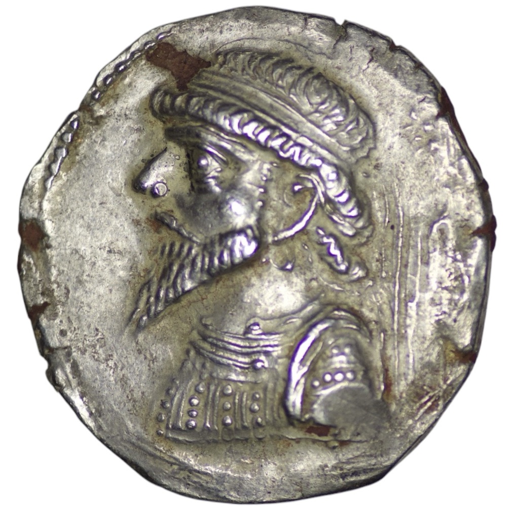 Elymais Kingdom. Kamnaskires V (Circa 54/3-33/2 BC). AR Tetradrachm (14.25g/ 28mm). Seleukeia on the Hedyphon mint. Dated 261 (52/1 BC). Diademed and draped bust left, wearing long beard and torque; to right, star above anchor symbol / Diademed and draped bust left, wearing beard; AΞ[Σ] (date) in exergue. van’t Haaff Type 9.1.1; Alram 463. Very fine, some original deposit on obverse and reverse.