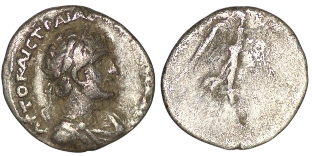 Laureate, draped and cuirassed bust right/ ΕΤ Δ; Nike advancing right, holding palm branch and wreath. RPC III online 3075; Metcalf 86B; Sydenham 256.