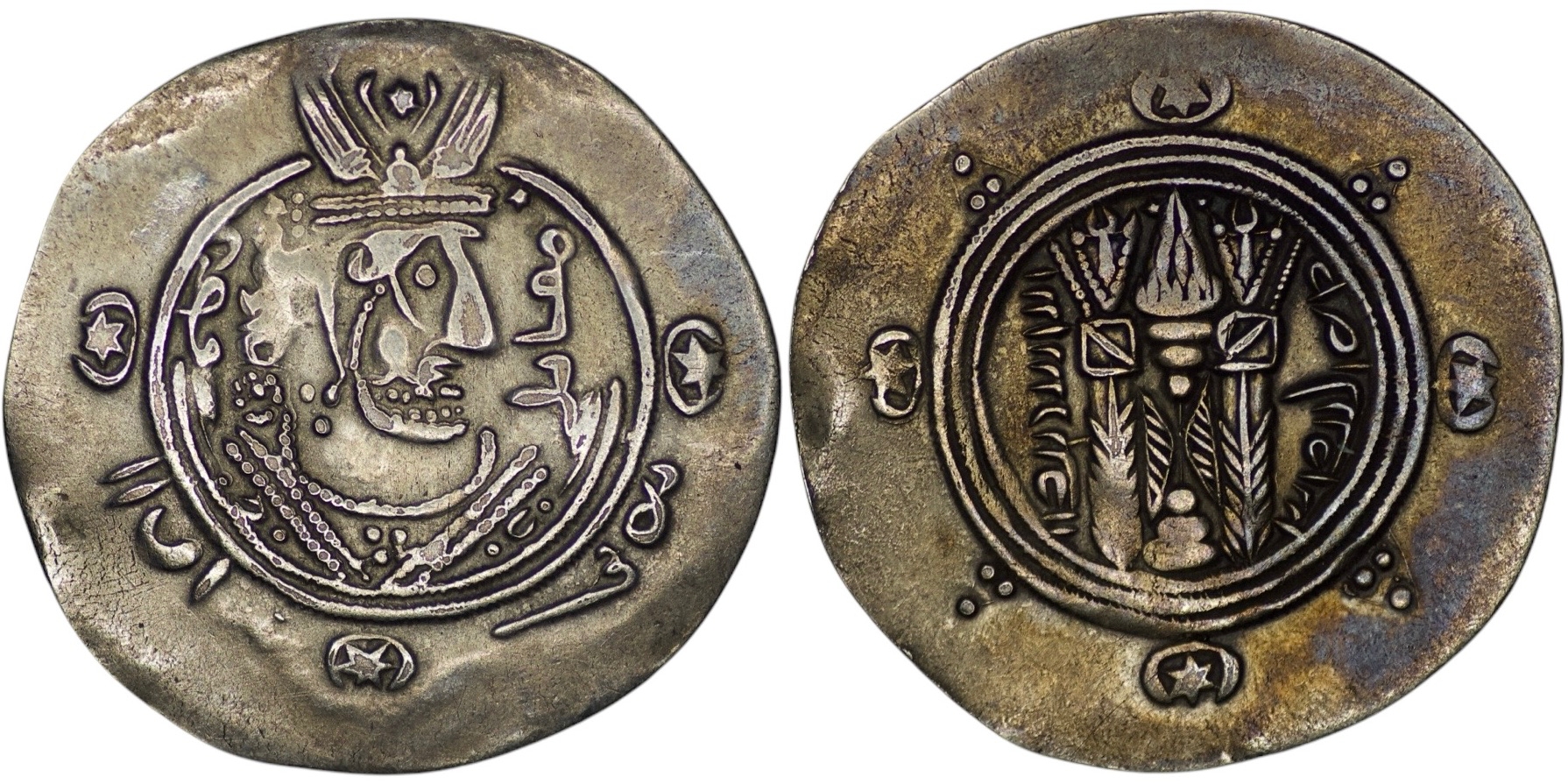 Abbasid Caliphate. Tabaristan. Muqatil (AH 172-176 = AD 788-793). AR Hemidrachm (1.95g/ 23mm). Tabaristan, PYE 139 = AH 174 = AD 791. Album 68. Very fine, nice toning