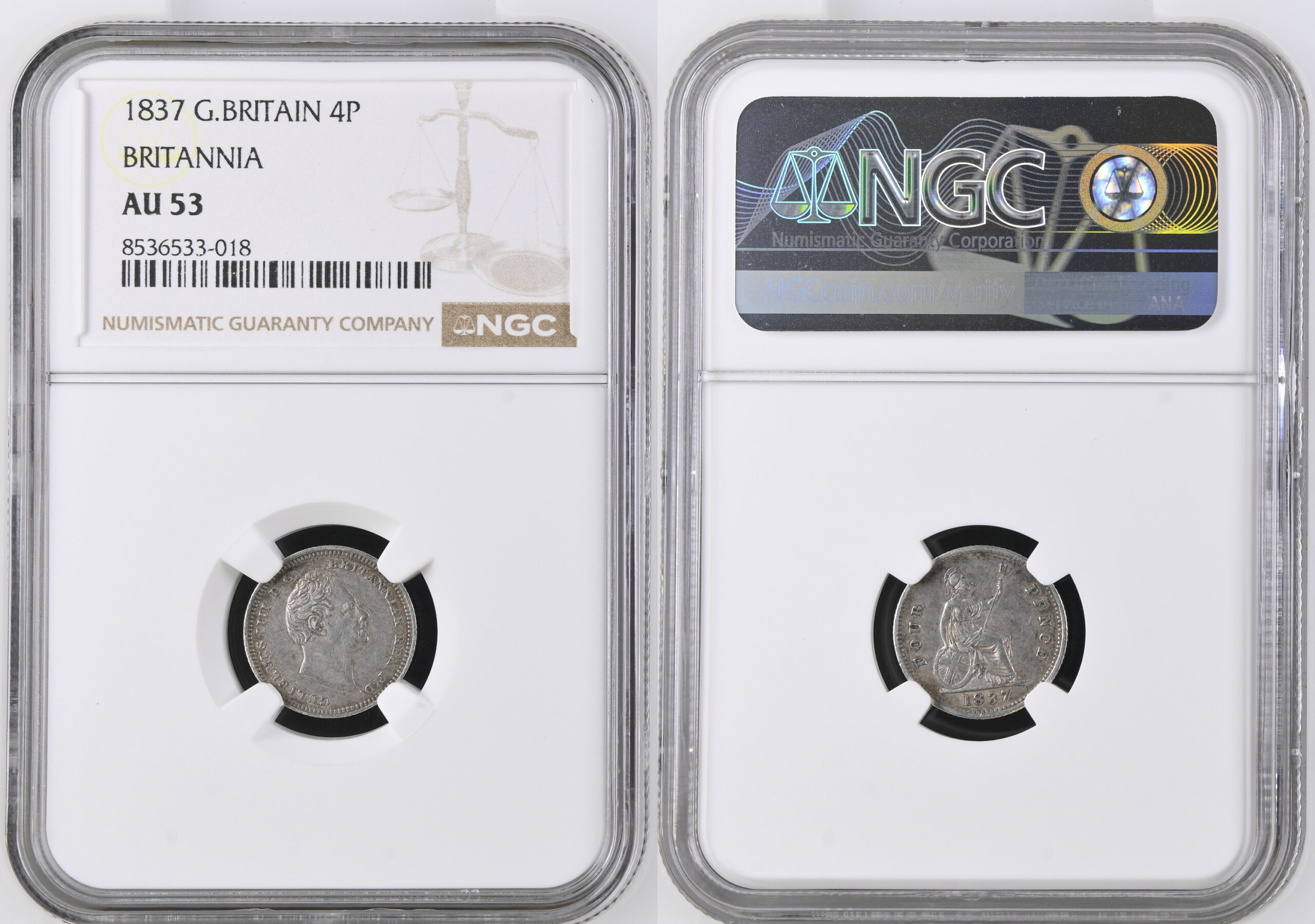 Great Britain. William IV (1830-1837). AR 4 Pence. 1837. KM 723. NGC AU 53.