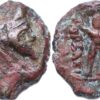 Kings of Parthia, Mithradates II (121-99), AE Chalkon, c. 119-99 BC (1g/ 11mm) Diademed and bearded bust right/ Radiate facing bust of Artemis. Very RARE