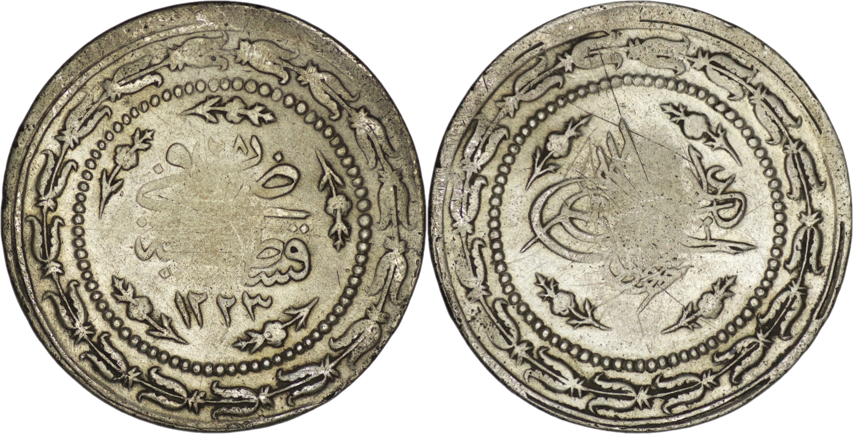 Ottoman Empire. Mahmud II (1808-1839). AR 6 Kurush (Piastres). (12.13g/ 38mm). Constantinople. 1223// Year 28. KM 603. Very fine.