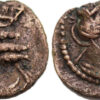 PARTHIAN EMPIRE. Pacorus II (AD78-120), AR Diobol, (1.36g), draped bust left wearing diademed tiara with “hooks” on crest, rev. square five-line blundered legend, archer seated right, holding out bow, monogram below (Shore 402; Sunrise 436; Sellwood, Num. Chron. 1989, type 8, pl. 42), toned, very fine. Ex Spink auction.