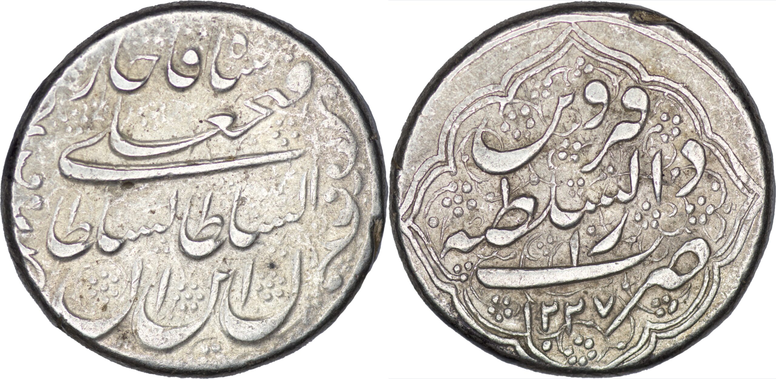 QAJAR: Fath ‘Ali Shah, AH 1212-1250 (AD 1797-1834). AR Rial (10.29g/ 23mm). Dar al-Saltane Qazvin (Qazwin) mint. Dated AH 1227. Album 2886; KM 697.6. Very fine.