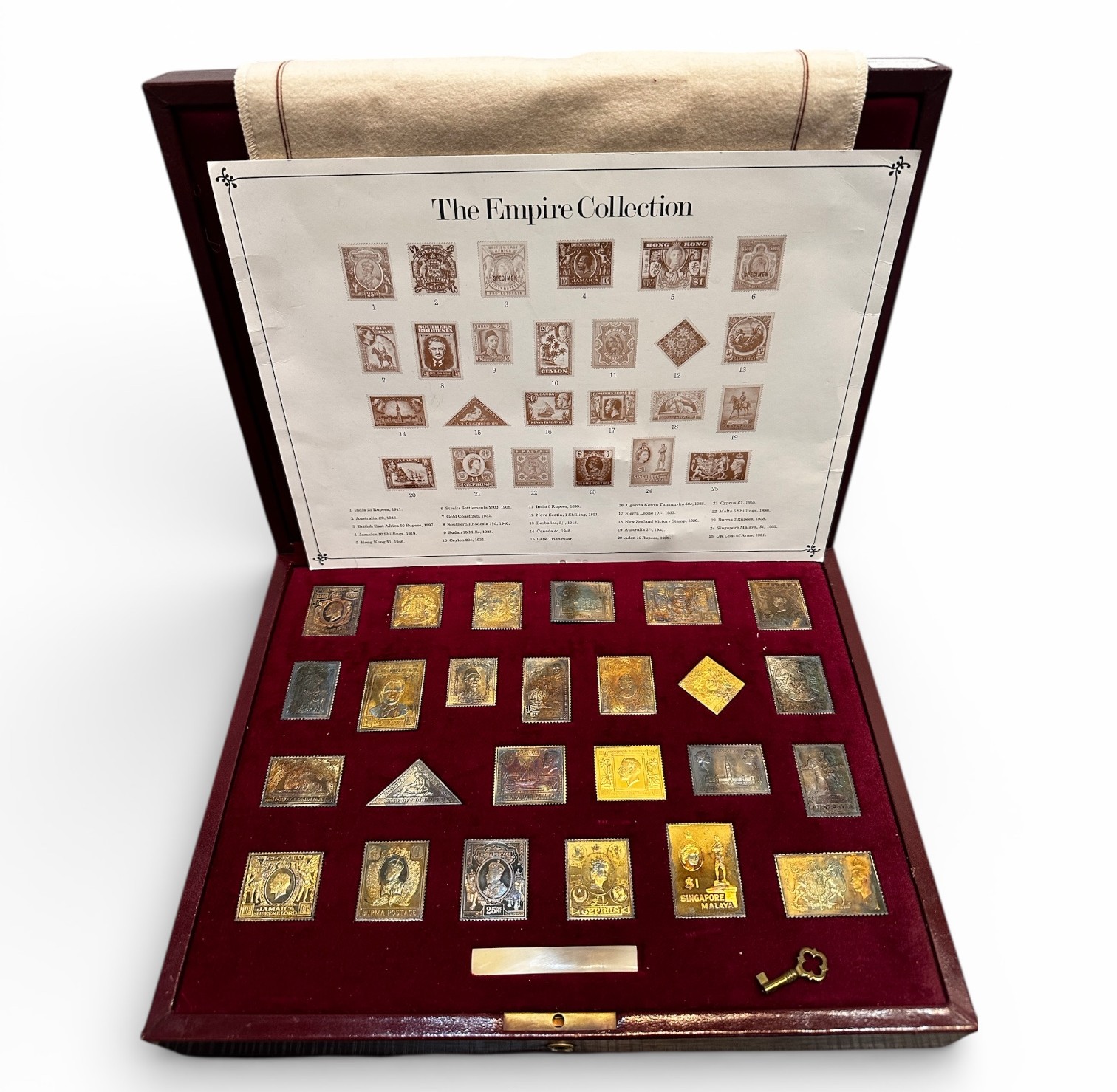 The Royal Collection hallmarked silver-gilt stamps. released by Hallmark Replicas Ltd 1981. Consist of 25 gold plated sterling silver (.925) stamps. Total weight approx. 460g (425 pure silver). The set comes in a fitted presentation case and key, with accompanying certificates or documentation.